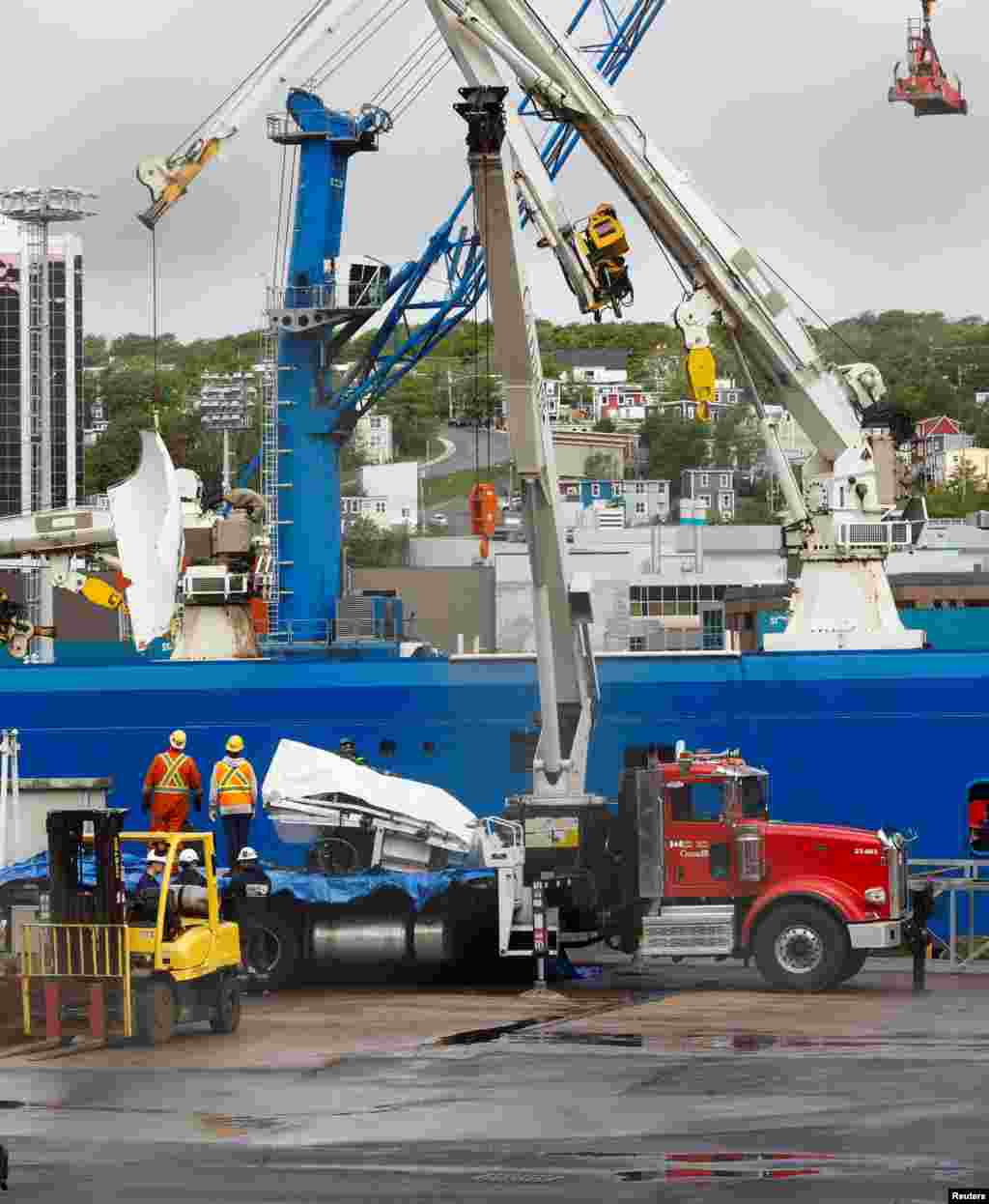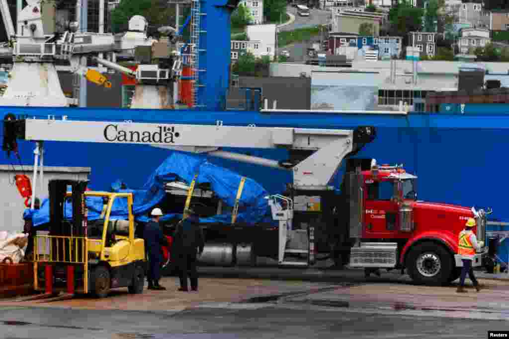 بحر اوقیانوس میں لاپتا ہونے والی آب دوز ٹائیٹن کا ملبہ اور اس میں موجود پانچ افراد کی ممکنہ باقیات کو سمندر کی تہہ سے نکال کر بدھ کو کینیڈا کے ساحل پر منتقل کر دیا گیا ہے۔ امریکی کوسٹ گارڈ کا کہنا ہے کہ تباہ ہونے والی آب دوز ٹائیٹن کے ٹکڑوں اور ممکنہ طور پراس میں موجود افراد کی باقیات کو کینیڈا کے ایک جہاز کے ذریعے جائے حادثہ سے لگ بھگ 400 میل شمال میں سینٹ جائز، نیو فاؤنڈ لینڈ لایا گیا ہے۔ ملنے والے شواہد کے تجزیے اور تحقیقات کے لیے انہیں میرین بورڈ آف انویسٹی گیشن منتقل کیا جائے گا۔ ٹائٹن نامی آب دوز 18 جون کو بحرِ اوقیانوس میں 3800 میٹر گہرائی میں موجود تاریخی بحری جہاز ٹائٹینک کے ملبےکو دیکھنے کے لئے سفر پر روانہ ہوئی تھی لیکن سفر کے آغاز کے پونے دو گھنٹے بعد اس سے رابطہ منقطع ہو گیا تھا۔ بعد میں ٹائٹن کے پھٹنے کے باعث اس میں موجود پانچ افراد ہلاک ہو گئے تھے۔