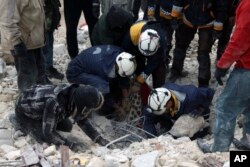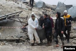 امدادی ادارے ’وائٹ ہیلمٹس‘ کے مطابق سیکڑوں افراد کے اب بھی عمارتوں کے ملبے تلے دبے ہونے کا اندیشہ ہے۔