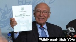 ان سفارشات کا اعلان پاکستان کے وزیر اعظم نواز شریف کے مشیر برائے امور خارجہ سرتاج عزیز نے اسلام آباد میں ایک نیوز کانفرنس میں کیا۔