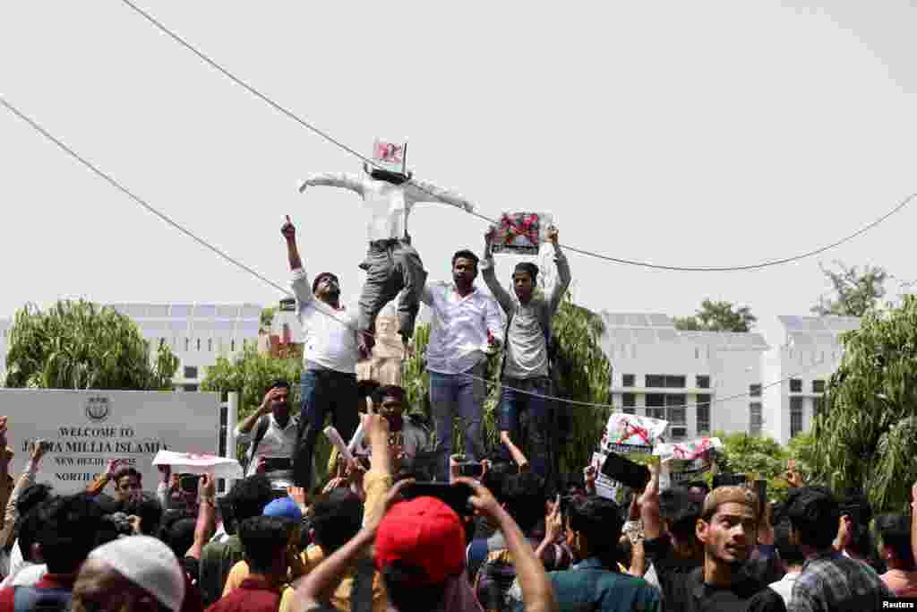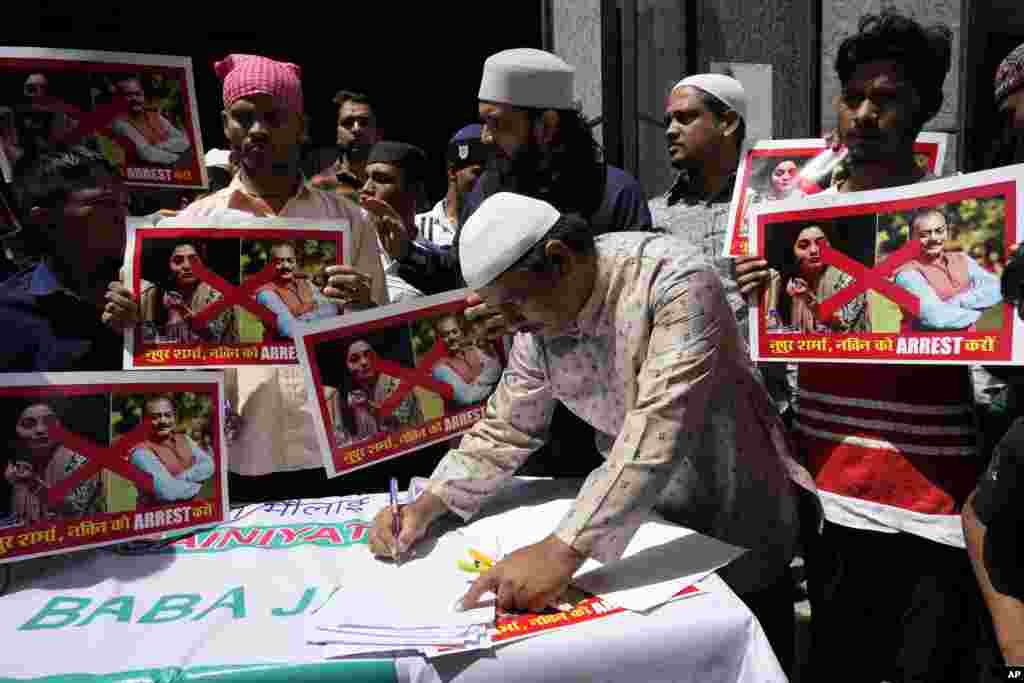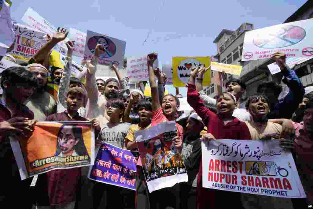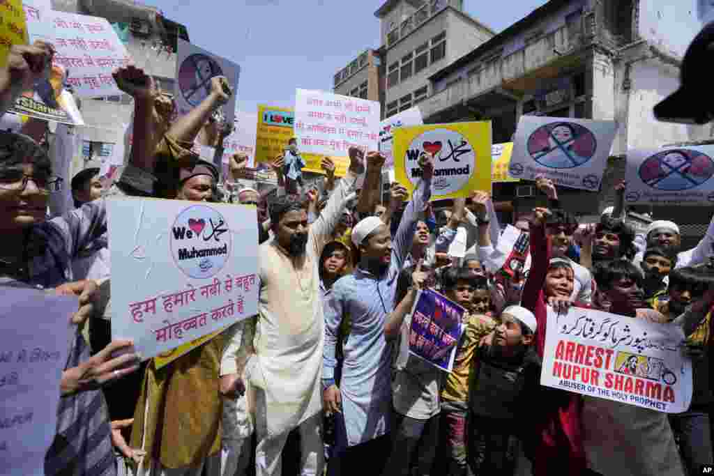 بھارت کی حکمران جماعت بھارتیہ جنتا پارٹی (بی جے پی) کے دو رہنماؤں نوپور شرما اور نوین کمار کی جانب سے پیغمبر اسلام کے بارے میں دیے گئے متنازع بیانات پر بھارت کے دارالحکومت نئی دہلی سمیت مختلف شہروں میں جمعے کو بھی احتجاج کیا گیا ہے۔ احتجاج کے دوران مظاہرین نے پلے کارڈ اور بینرز اٹھا رکھے تھے اور وہ پیغمبر اسلام سے اپنی محبت کا اظہار کر رہے تھے۔ مظاہرین نے مطالبہ کیا کہ ان دونوں رہنماؤں کو گرفتار کر کے ان کے خلاف کارروائی کی جائے۔ دہلی، ممبئی، احمد آباد اور بھارت کے زیرِانتظام کشمیر میں ہونے والے احتجاج کی تصاویر دیکھیے اس پکچر گیلری میں۔