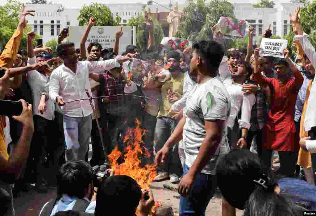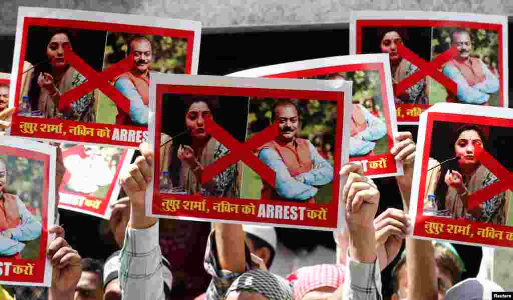 بھارت کی حکمران جماعت بھارتیہ جنتا پارٹی (بی جے پی) کے دو رہنماؤں نوپور شرما اور نوین کمار کی جانب سے پیغمبر اسلام کے بارے میں دیے گئے متنازع بیانات پر بھارت کے دارالحکومت نئی دہلی سمیت مختلف شہروں میں جمعے کو بھی احتجاج کیا گیا ہے۔ احتجاج کے دوران مظاہرین نے پلے کارڈ اور بینرز اٹھا رکھے تھے اور وہ پیغمبر اسلام سے اپنی محبت کا اظہار کر رہے تھے۔ مظاہرین نے مطالبہ کیا کہ ان دونوں رہنماؤں کو گرفتار کر کے ان کے خلاف کارروائی کی جائے۔ دہلی، ممبئی، احمد آباد اور بھارت کے زیرِانتظام کشمیر میں ہونے والے احتجاج کی تصاویر دیکھیے اس پکچر گیلری میں۔