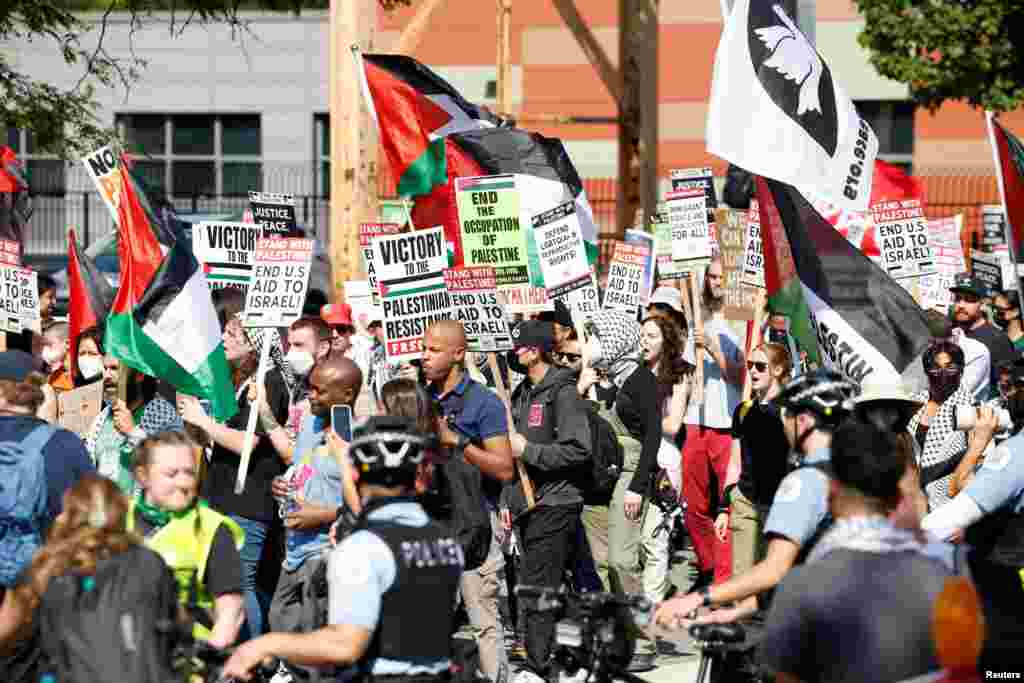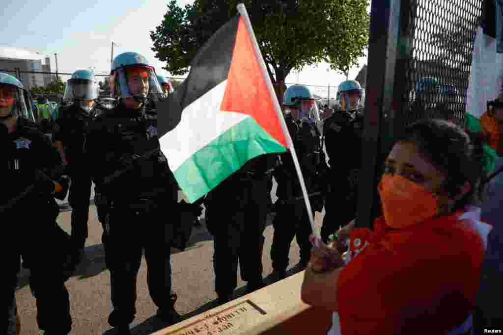 امریکہ کے شہر شکاگو میں پیر کو ڈیمو کریٹک نیشنل کنونشن کے آغاز کے موقع پر فلسطینیوں کے حامی سینکڑوں افراد نے غزہ میں جاری جنگ کے خلاف احتجاج کیا اور کنونشن کے قریب حفاظتی رکاوٹ کو بھی توڑ دیا۔ مظاہرین نے پلے کارڈز اور فلسطینی پرچم بھی اٹھائے ہوئے تھے۔ ان کا مطالبہ تھا کہ اسرائیل اور حماس کے درمیان جنگ بندی کی جائے۔ اگرچہ یہ احتجاج بڑے پیمانے پر پرامن تھا۔ لیکن کچھ افراد نے سیکیورٹی باڑ ہٹانے کی کوشش کی جنہیں پولیس نے حراست میں لے لیا۔ شکاگو پولیس کا کہنا ہے کہ کچھ مظاہرین نے باڑ ہٹا کر پولیس پر پانی کی بوتلیں اور دیگر سامان پھینکا۔ البتہ پولیس نے صورتِ حال پر قابو پا لیا۔ دوسری جانب اسرائیل کےحامیوں نے بھی ریلی نکالی۔ ان افراد نے اسرائیلی پرچم اٹھائے ہوئے تھے۔