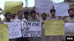 پشتون تحفظ موومنٹ کے کارکن نیازبین ملنگ نے ’وائس اف امریکہ سے بات کرتے ہوئے بتایا کہ راولپنڈی سے گذشتہ روز ان کے ایک ساتھی سرور داوڑ کو اُٹھایا گیا، جسے بعد میں چھوڑ دیا گیا ہے، جبکہ خیبر پختونخوا کے ضلع ٹانک میں ایک کارکن عرفان بٹھنی جو دسویں کلاس کا طالبعلم تھا ماورائے عدالت قتل کردیا گیا، جس کے لئے ہمارا مطالبہ ہے کہ ملوث پولیس اہلکاروں کو گرفتار کرکے قرار واقعی سزا دی جائے۔