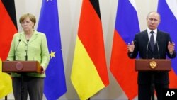 پیوٹن نے یہ تردید جرمن چانسلر آنگلہ مرخیل کے ہمراہ ایک مشترکہ اخباری کانفرنس سے خطاب کرتے ہوئے کی۔ اُن کی ملاقات ’سوچی‘ کے مقام پر بحیرہ اسود میں پیوٹن کی موسم گرما کی رہائش گاہ پر ہوئی۔