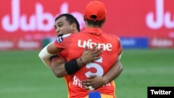 دوسری وکٹ لینے کا سہرا رومان رئیس کو ملا جو اس ایونٹ کا پہلا میچ کھیل رہے تھے۔ انہوں نے اپنی بال پر محمد سمیع کے ہاتھوں روسو کو کیچ کرایا۔
