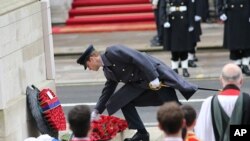 ملکہٴبرطانیہ کوئین الزیبیتھ نے آج لندن میں وہائٹ ہال 'میموریل' پر برطانیہ اور دولت مشترکہ کے جنگی محاذوں پر اپنی جانوں کا نذرانہ پیش کرنے والے فوجی جوانوں کی یاد میں ہونے والی ایک باوقار تقریب میں شرکت کی۔