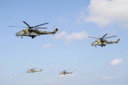 ایوزڈا ٹی وی کی رپورٹ کے مطابق، یہ روس کی فوج کے ہیلی کاپٹرز کا پہلا دستہ ہے جو شمالی شام پہنچا ہے۔