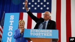 منگل کے روز نکلنے والی ریلی میں، کلنٹن اور سینڈرز نے ایک مشترکہ بیان جاری کرتے ہوئے کہا ہے کہ ’’مضبوط امریکہ کی تعمیر، معیشت کو سب سے لیے بہتر بنانے، جو صرف چوٹی کے طبقوں کے لیے سودمند نہ ہو، ہم مل کر کام کریں گے‘‘۔