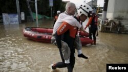 جمعے کو شیباؤ دریا کا پانی دارالحکومت ٹوکیو سے 350 کلومیٹر دور دیہی علاقے اوساکی میں گھروں اور دھان کے کھیتوں میں داخل ہو گیا۔ حکام کا کہنا ہے کہ سیلاب سے 40 افراد محصور ہو گئے ہیں۔