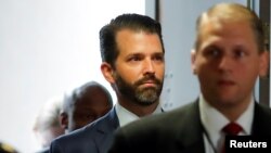 امریکی صدر ڈونلڈ ٹرمپ کے بڑے بیٹے، ڈونلڈ ٹرمپ جونئیر بند کمرے کی سماعت کے لیے بدھ کے روز سینیٹ کی انٹیلی جنس کمیٹی کے روبرو پیش ہوئے۔ اس کے بعد، انھوں نے اخباری نمائندوں کو بتایا کہ ان کے جوابات وہی ہیں جو انھوں نے کمیٹی کے سامنے 2017ء کی سماعت کے دوران دیے تھے۔