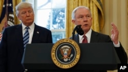 سینیٹر جیف سیشنز نے جمعرات کے روز وائٹ ہاؤس میں منعقدہ ایک تقریب میں اگلے امریکی اٹارنی جنرل کے عہدے کا حلف لیا، جہاں اُنھوں نے زور دے کر کہا کہ امریکہ کو ایک ’’امیگریشن کے ایک قانونی نظام‘‘ کی ضرورت ہے، جس سے امریکی عوام کے مفادات کو فروغ مل سکے۔
