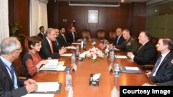 بعدازاں، پانچ گھنٹے کے دورے کے بعد بھارت روانہ ہونے پر، امریکی وزیر خارجہ مائیک پومپیو نے کہا کہ ’’ہم نے اُن کی نئی حکومت کے بارے میں بات کی۔ بات چیت دونوں ملکوں کے مابین وسیع جہتی شعبوں، معیشت، کاروبار، تجارت کو پھر سے ترتیب دینے کا موقع فراہم کرتی ہے۔ وہ کام جس کے بارے میں ہم سب جانتے ہیں کہ ضرورت اس بات کی ہے کہ افغانستان میں پُرامن تصفیہ حاصل ہو جس کا یقینی طور پر افغانستان کے علاوہ امریکہ اور پاکستان کو بھی فائدہ ہوگا۔ اور مجھے امید ہے کہ جس بات کی ہم نے آج بنیاد رکھی ہے، اُس کے نتیجے میں شرائط پوری ہوں گی ،جس سے کامیابی جاری رکھی جاسکے، ایسے میں جب ہم پیش رفت کی جانب بڑھ رہے ہیں‘‘۔
