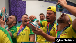 انٹرنیشنل کرکٹ کونسل (آئی سی سی) نے بھی آسٹریلوی ٹیم کے جشن کی ویڈیوز شیئر کیں جس میں سے ایک ویڈیو میں دیکھا جا سکتا ہے کہ آسٹریلوی وکٹ کیپر میتھیو ویڈ اور مارکس اسٹوئنس جوتے میں شراب پی رہے ہیں۔