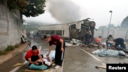 ٹی وی پر دکھائے جانے والے مناظر میں جائے حادثہ سے دھواں اٹھتا ہوا دکھایا جا رہا ہے کہ جب کہ ریل گاڑی کے ملبے کے قریب کمبلوں میں لپٹی لاشیں رکھیں ہیں۔