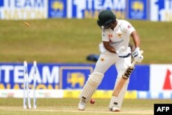 اس کے بعد 51 رنز بنانے والے نیروشان ٹیکویلا کو بھی نسیم شاہ نے آؤٹ کیا۔ جس وقت وہ پویلین لوٹے اس وقت سری لنکا کا اسکور 333 تھا۔ پرباتھ جیاسوریا کو یاسر شاہ نے 353 کے مجموعے پر ایل بی ڈبلیو کیا۔ میزبان ٹیم کی آخری وکٹ 378 رنز پر گری جب 35رنز بنانے والے رمیش مینڈیس کو یاسر شاہ نے بولڈ کیا۔
