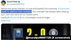 مناف پٹیل نامی 'ایکس' صارف نے اپنی پوسٹ میں لکھا کہ سری لنکا کے خلاف سیریز شروع ہونے سے قبل کسی کو بھی توقع نہیں تھی کہ اس کا نتیجہ یہ نکلے گا۔