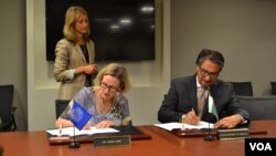 پاکستان کی جانب سے سفیر، جلیل عباس جیلانی اور عالمی بنک کی جانب سے جنوبی ایشیا کے لئے نائب صدر اینکس ڈیکسون نے دسختط کئے۔