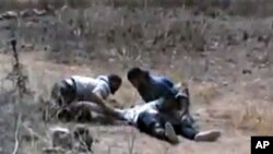 شام میں انسانی حقوق سے متعلق برطانیہ میں قائم تنظیم کے سربراہ رامی عبدالرحمن نے جمعے کے روز وائس آف امریکہ کو بتایا کہ انہیں ایک ویڈیو ملی ہے جس میں سڑک کے کنارے خون میں لت پت نعشوں کا ڈھیر دکھائی دے رہاہے۔