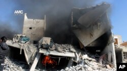 برطانیہ میں قائم ’سیریئن آبزرویٹری فور ہیومن رائٹس‘ نے بتایا ہے کہ شام کی فوج نے منگل کے روز شامی طیاروں کے ذریعے حلب کے مضافات میں سُکاری کے علاقے پر، بقول اُن کے، ’بیرل بم‘ گرائے۔