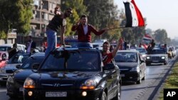 شام کے دارالحکومت دمشق میں سیکڑوں شہری ہفتہ کو مختلف مقامات پر سڑکوں پر نکل آئے اور اپنی گاڑیوں کے ہارن بجا کر اور قومی پرچم لہراتے ہوئے ریلیوں کی شکل میں گھومتے رہے جو بظاہر امریکہ، برطانیہ اور فرانس کی طرف سے رات دیر گئے ہونے والی غیر معمولی فضائی کارروائیوں کے خلاف آواز بلند کرنے کا ایک عمل ہے۔