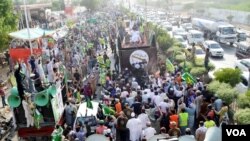 تحریک لبیک نے بھی عام انتخابات میں کامیابی کے لئے کراچی کا رخ کرلیا ہے۔ تحریک کے سربراہ علامہ خادم حسین رضوی کا کہنا ہے کہ وہ لوٹی ہوئی دولت واپس لاکر بیرونی قرضے اتا ریں گے اور ملک میں وی آئی پی کلچر اور سود کا خاتمہ کیا جائے گا۔
