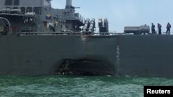 گائیڈڈ میزائلوں سے لیس امریکی جہاز معمول کے گشت پر سنگاپور کی بندرگاہ جارہا تھا۔ بیان کے مطابق ٹکر سے جنگی جہاز کو نقصان پہنچا ہے لیکن وہ اپنے تئیں سنگاپور کی بندرگاہ تک پہنچ گیا ہے۔