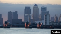 دریائے ٹیمز میں پانی کی سطح بلند ہونے کے بعد سیلاب سے بچاؤ کے حفاظتی دروازوں کو اونچا کر دیا گیا ہے تاکہ وسطی لندن شہر کے نشیبی علاقوں میں پانی کے داخلے کو روکا جا سکے۔