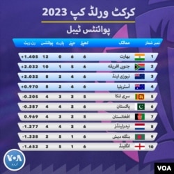 اس فتح کے ساتھ ہی 12 پوائنٹس کے ساتھ بھارت پوائنٹس ٹیبل پر پہلی پوزیشن میں پہنچ گیا ہے جب کہ انگلینڈ بدستور دو پوائنٹس کے ساتھ آخری پوزیشن پر موجود ہے۔