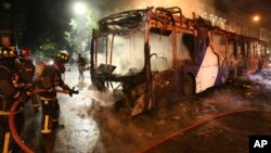 پولیس کے ساتھ جھڑپوں کے بعد مظاہرین نے شہر کی متعدد عمارتوں کو نذر آتش کر دیا تھا، جس کے بعد میٹرو سسٹم تا حکم ثانی بند کر دیا گیا ہے۔