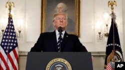 جارج واشنگٹن کی آویزاں تصویر کے سامنے کھڑے ہو کر، ٹرمپ نے ہلاک و زخمی ہونے والوں کے اہل خانہ سے اظہارِ ہمدردی کیا۔