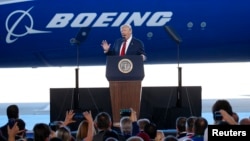 بوئنگ کے ملازمین سے خطاب کرتے ہوئے، صدر نے کہا کہ وہ ادارے جو امریکی کارکنان کو نوکری سے نکالیں گے یا پھر صنعتوں کو بیرون ملک لے جائیں گے اُنھیں ’’بڑا جرمانہ ادا کرنا پڑے گا‘‘۔ ٹرمپ نے یہ بھی کہا کہ امریکی فوج ’ایف 18 ’سوپر ہارنیٹس‘ کے لیے بڑے آرڈر کی منتظر ہے‘‘۔