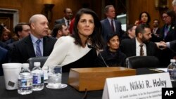 سینیٹ کی امورِ خارجہ کمیٹی کے روبرو بیان دیتے ہوئے، ہیلی نے کہا کہ ’’میں نہیں سمجھتی کہ ہم اُن پر اعتماد کر سکتے ہیں‘‘۔ نِکی ہیلی ساؤتھ کیرولینا کی گورنر ہیں۔