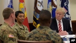 امریکی صدر ڈونالڈ ٹرمپ نے فلوریڈا کے شہر ٹمپا میں فضائی افواج کے یکڈِل کے اڈے پر سنٹرل کمانڈ (سینٹکام) کے صدر دفتر کے دورے کے دوران اپنےخطاب میں، فوجوں کے لیے اپنی مکمل حمایت کا اعادہ کیا۔