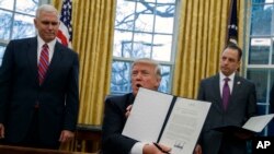 وائٹ ہاؤس میں ٹرمپ نے کہا ہے کہ ’’جو اقدام ہم نے ابھی کیا ہے، یہ امریکی کارکن کے لیے اہمیت کا حامل ہے‘‘۔