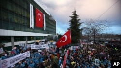 تاہم ’زمان اخبار‘ کے حامیوں نے اخبار کے دفتر کے باہر جمع ہو کر اس فیصلے کے خلاف احتجاج کیا۔ مظاہرین نے اپنے ہاتھوں میں پلے کارڈ اٹھا رکھے تھے جن پر درج تھا کہ وہ آزادی صحافت کے لیے جدوجہد جاری رکھیں گے۔