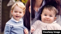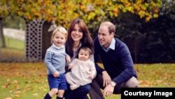شاہی محل کنسگٹن پیلس کی طرف سے جمعے کو جاری ہونے والی تصویر میں شہزادہ ولیم اور شہزادہ کیٹ اپنے دونوں بچوں تقریبا ڈھائی سالہ شہزادہ جارج اور سات ماہ کی شہزادی شارلٹ کے ساتھ مسکراتے ہوئےنظر آ رہے ہیں ۔