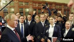 پیوٹن نے سینٹ پیٹرزبرگ شہر میں یونیورسٹی کے طالب عملوں سے خطاب کرتے ہوئے کہا کہ 'ہم اکثر کہتے ہیں یوکرین کی فوج، یوکرین کی فوج۔ لیکن، (مشرقی یوکرین) کے خلاف اصل میں کون لڑ رہا ہے؟ مسلح افواج کی 'ڈویینز' ہوا کرتی ہیں، لیکن، یہ زیادہ تر، نام نہاد رضاکار قوم پرست 'بٹالینز' ہیں۔ یہ تو فوج بھی نہیں، غیر ملکی لشکر ہے۔ یہ تو ایک غیر ملکی نیٹو سپاہ ہے'۔
