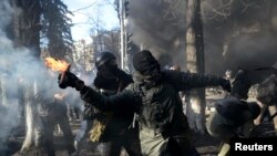 یوکرائن کے صدر وکٹر یانوکووچ نے بدھ کو تشدد کے تازہ واقعے کی ذمہ داری حزب مخالف کے رہنماؤں پر عائد کی۔ ان کا کہنا تھا کہ مظاہرین کو حکومت مخالف مظاہروں میں ہتھیار لانے کے لیے زور دینے والے کارکنوں نے جمہوریت کے اصولوں کی خلاف ورزی کی اور انھیں اس کے نتائج بھگتنا ہوں گے۔