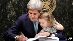 کیری نے کہا کہ امریکہ اس معاہدے پر دستخط کا منتظر ہے اور بین الاقوامی برادری پر زور دیا کہ وہ اس کی پیروری کرے۔