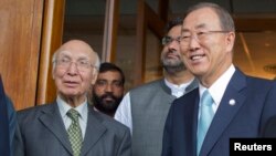 منگل کی صبح اقوامِ متحدہ کے سیکرٹری جنرل بان کی مون اور پاکستانی وزیرِ اعظم کے مشیر برائے قومی سلامتی اور اُمور خارجہ سرتاج عزیز نے اپنے اپنے وفود کے ہمراہ وزارتِ خارجہ میں بات چیت بھی کی۔