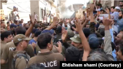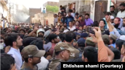 کچھ نوجوانوں کے ہاتھوں میں ڈنڈے بھی تھے جب کہ جس شخص پر قرآن کی مبینہ بے حرمتی کا الزام تھا اس کے گھر کا بجلی کا کنکشن بھی زبردستی کاٹ دیا۔