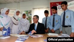 سفیر رچرڈ اولسن نے مظفرآباد میں واقع یونیورسٹی میں واقع لنکن کارنر میں انگلش ایکسیس مائیکرواسکالرشپ پروگرام کے چودہ سے سولہ سال کی عمر کے طالب علموں کے ساتھ مل کر فکری املاک کے حقوق کا عالمی دن منایا۔