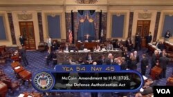 ایوان نمائندگان نے پہلے ہی اپنے انداز کے ایک بِل کی منظوری دے رکھی ہے؛ لیکن وائٹ ہاؤس نے اُسے ویٹو کرنے کی دھمکی دی ہے، کیونکہ جمعرات کو منظور ہونے والی سینیٹ کی قانون سازی کی بدولت کیوبا کے گوانتانامو بے کے فوجی قیدخانے کو بند کرنا مشکل تر ہوجائے گا، جس کا وعدہ ایک طویل عرصے سے صدر اوباما نے کر رکھا ہے۔