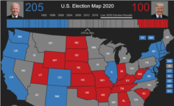 بائیڈن نے 205 اور ٹرمپ نے 118 الیکٹورل ووٹ حاصل کر لیے