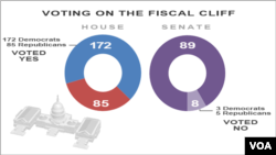 امریکی کانگریس کے دونوں ایوانوں نے اب اُس بل کی منظوری دے دی ہے جس کا ایک مقصد قومی معیشت کو نام نہاد فسکل کلف یا مالیاتی چٹان سے گرنے سے بچانا تھا اور جیسا کہ ’ واشنگٹن پوسٹ‘ کہتا ہے اس کے تحت ری پبلکن کو ارکان صدر اوبامہ کے اس مطالبے کے سامنے ہتھیار ڈالنے پڑے ہیں کہ ملک کی آبادی کے امیر ترین طبقے پر ٹیکسوں کا بوجھ بڑھ جانا چاہئیے۔ اس کے ساتھ ساتھ, اس سے ملک کے متوسط طبقے کےکروڑوں افراد اپنے ٹیکسوں میں اضافے کے خطرے سے محفوظ ہو گئے ہیں۔