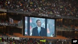مسٹر اوباما نے جو مسٹر منڈیلا کی طرح اپنے ملک میں منتخب ہونے والے پہلے سیاہ فام صدر ہیں، بتایا کہ طالب علمی کے دور میں کیونکر منڈیلا اُن کے لئے مِشعلِ راہ ثابت ہوئے۔ جس پر حاضرین نے زوردار تالیوں سے اور بہت سے سربراہانِ مملکت اور غیر ملکی عمائدین نے کھڑے ہو کر داد دی اور مسٹر اوباما نے اس تلخ حقیقت کی طرف بھی توجّہ دلائی کہ دنیا بھر میں اب بھی ایسے مرد اور عورتیں ہیں جن پر اُن کے رنگ و نسل، اُن کی پسند اور ناپسند یا اُن کے اعتقادات کی بنا پر ظلم توڑے جا رہے ہیں۔