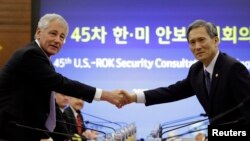 امریکی وزیر دفاع چک ہیگل اور جنوبی کوریا کے وزیر دفاع کم کوان جن نے بدھ کو سیول میں سالانہ سکیورٹی مذاکرات کے دوران اس معاہدے پر دستخط کیے۔