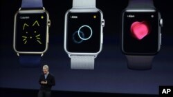 ٹیکنالوجی کے میدان میں امریکہ کےبڑے ادارے، ’ایپل انکارپوریٹڈ‘ نے پیر کے روز اپنی جدید ترین ’ایپل واچ‘ متعارف کرائی۔ متعدد اپلیکیشنز کی سہولت سے آراستہ، یہ قیمتی ورسٹ واچ ایک چھوٹےسے کمپیوٹر کا درجہ رکھتی ہے۔