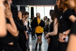 انسٹرکٹر فیم کیو لی خواتین کو تصاویر کے لیے پوز دینا سکھا رہی ہیں۔