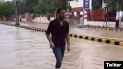 صارف نے کہا کہ بارش کے پانی میں ڈمی پوز لوگوں کو بے وقوف بنانے کے لیے ہے۔